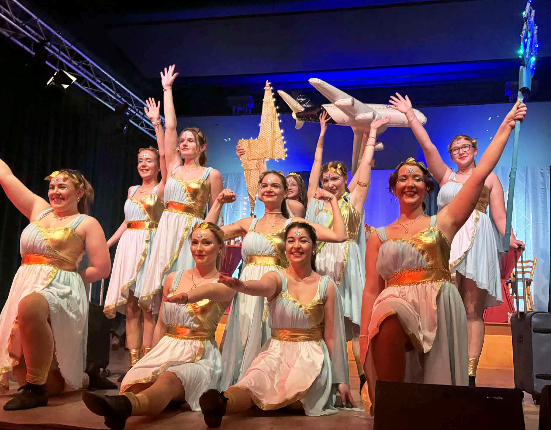 Die zweite Halbzeit der Prunksitzung startete mit einem echten Kracher: Jutta Hinderberger, besser bekannt als die pfälzische Kult-Figur Kättl Feierdaach, feierte ihr Debüt beim TSV. Mit ihrer unnachahmlichen Art berichtete sie brühwarm aus ihrem Eheleben und den Tücken des Alltags mit einem frischgebackenen Rentner – ein Angriff auf die Lachmuskeln, bei dem kein Auge trocken blieb. Göttlich ging es weiter mit der Gruppe LA Dance Flow, die das Publikum mit ihrem Thema „Chaos auf dem Olymp“ in die Welt der griechischen Sagen entführte. Doch die ausgelassene Stimmung mischte sich kurz darauf mit Wehmut: Sitzungspräsident Abo musste die langjährige Trainerin Laura Franzke-Dammert verabschieden. Nach beeindruckenden 15 Prunksitzungen bricht sie nun in die Ferne auf – ein emotionaler Moment, der zeigt, wie viel Herzblut in der Vereinsarbeit steckt.
