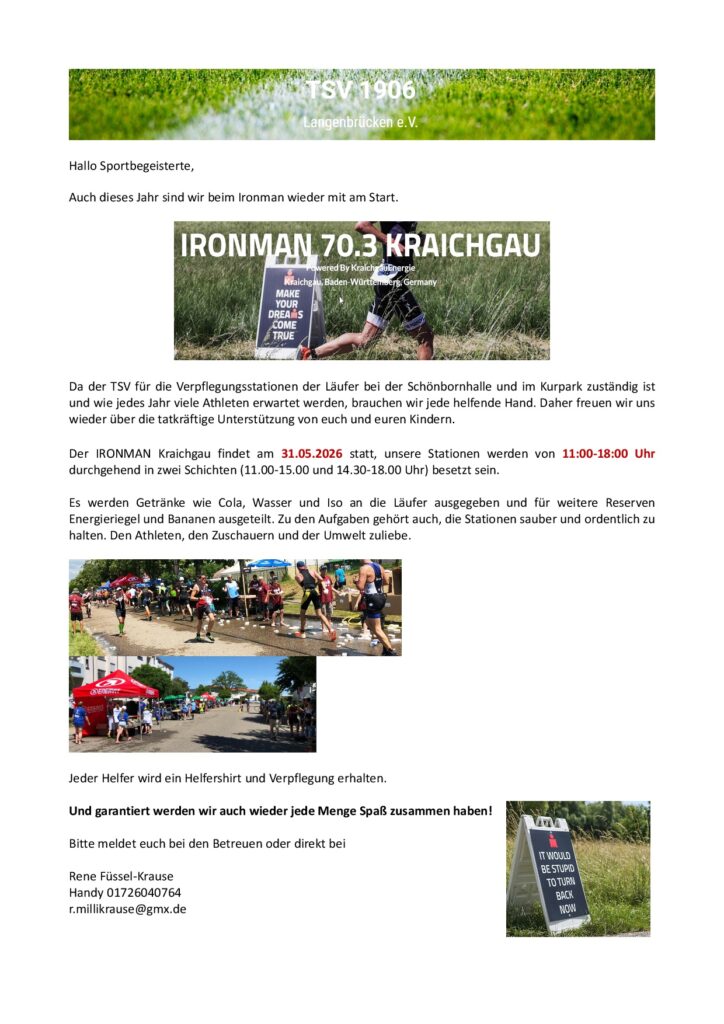 Sonntag, 31.05.2026 IRONMAN 70.3 Kraichgau 2026